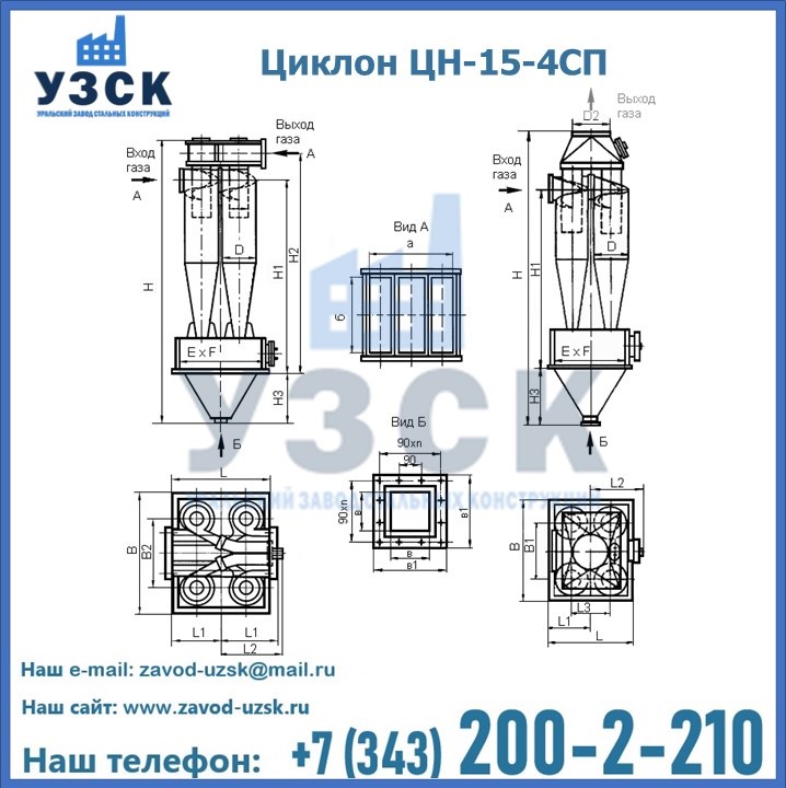 | ЦИКЛОН ЦН-15-800х4СП | 1500 | 1900 | 890 | 538 | 960 | 947 | 200 | 310 | 2630 |